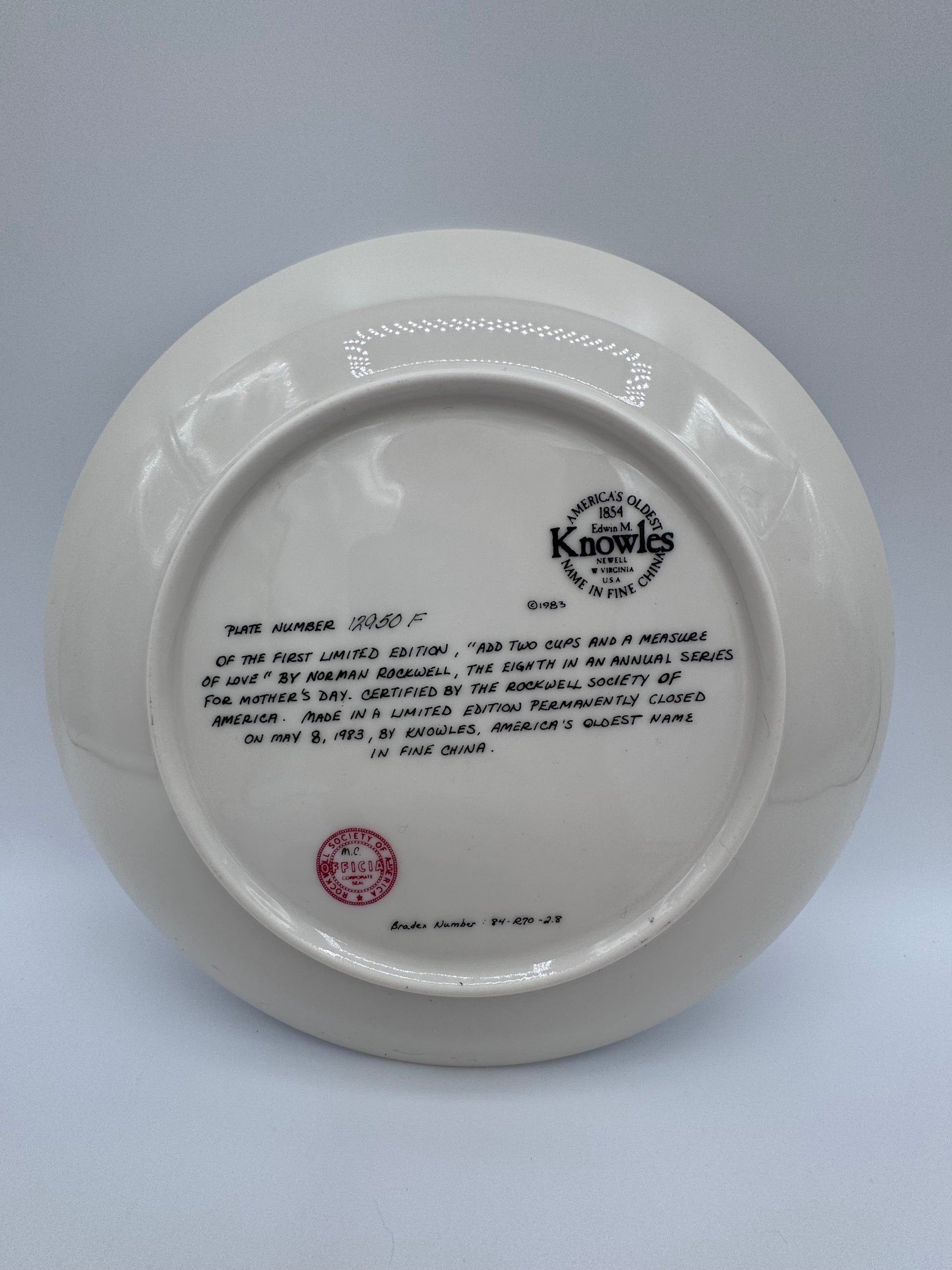 Add Two Cups And A Measure of Love 1983 Norman Rockwell Collector Plate