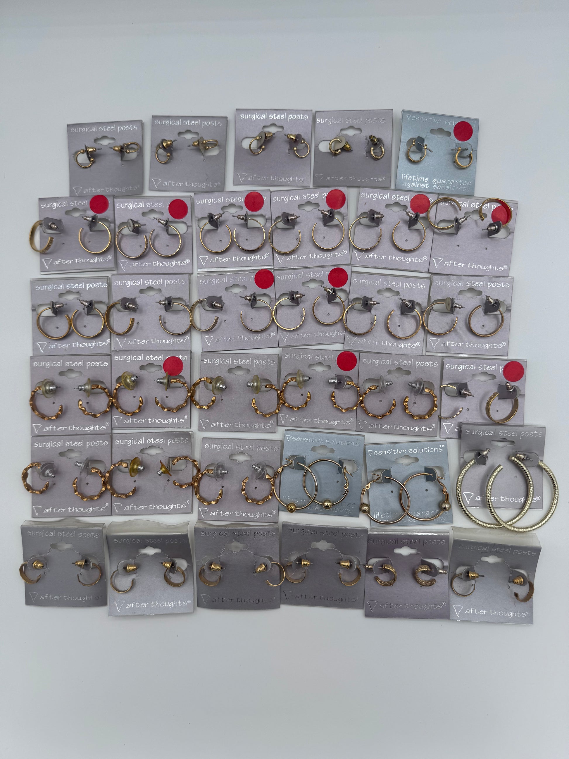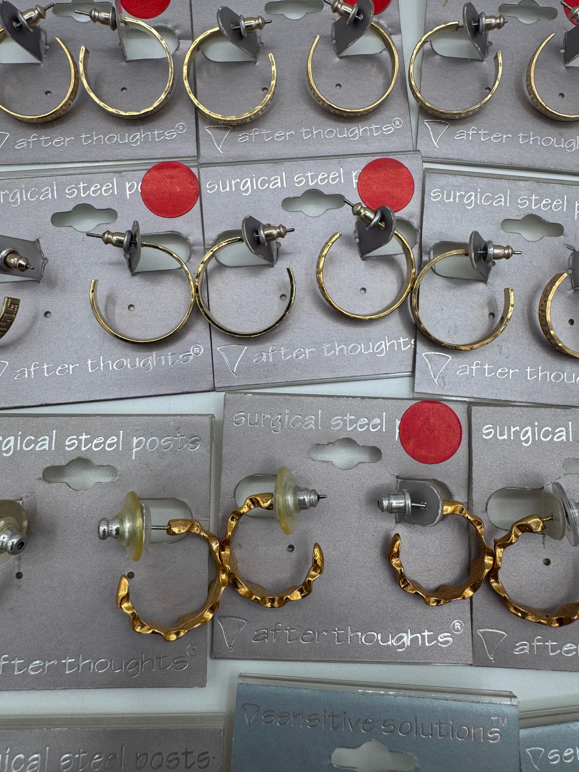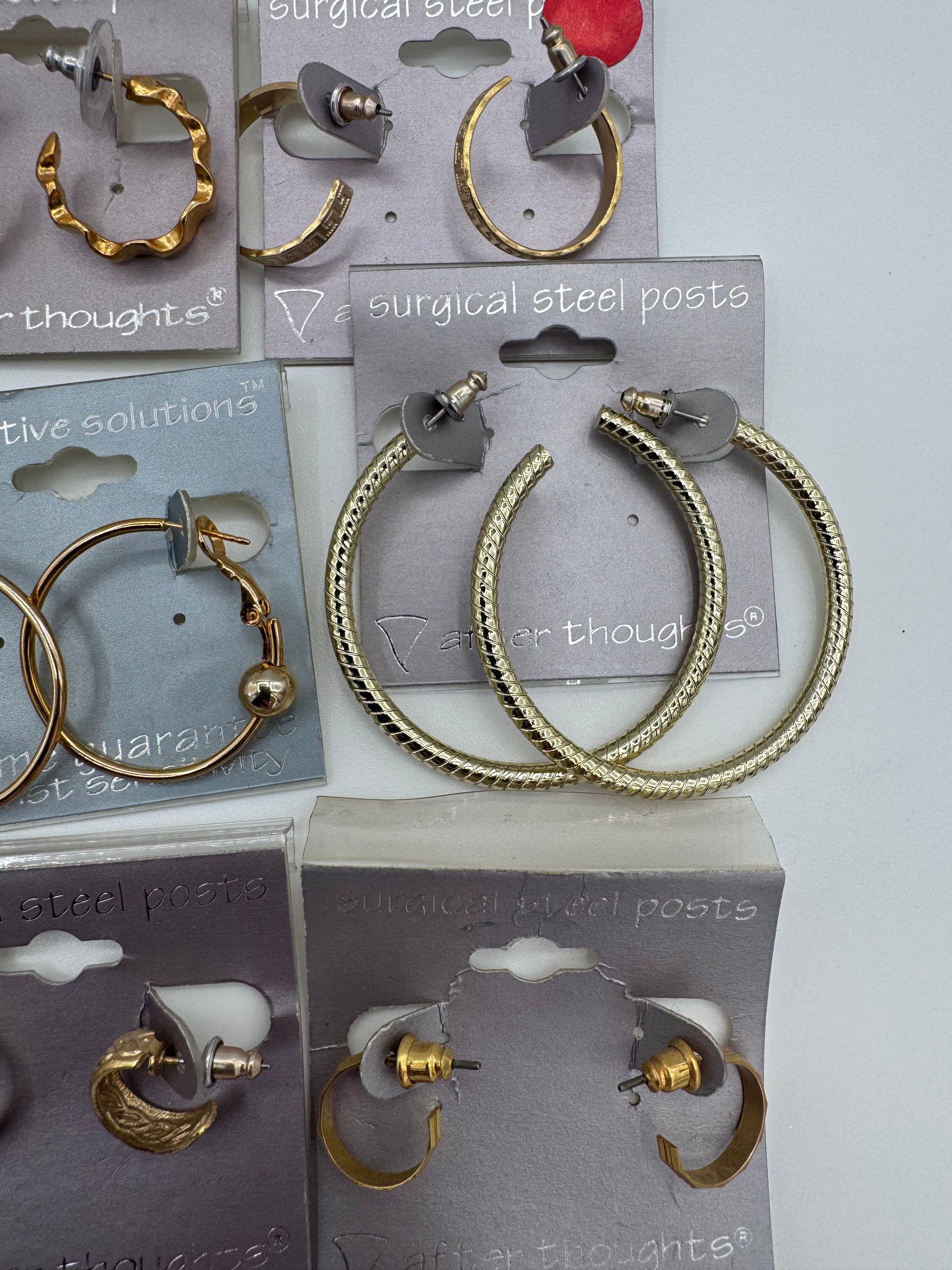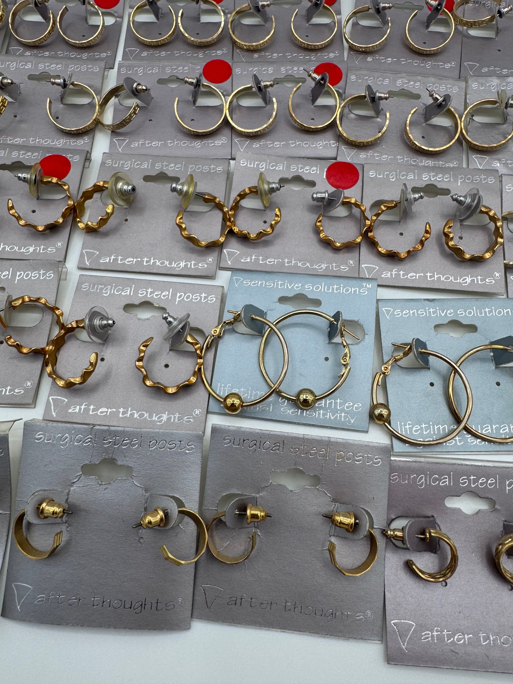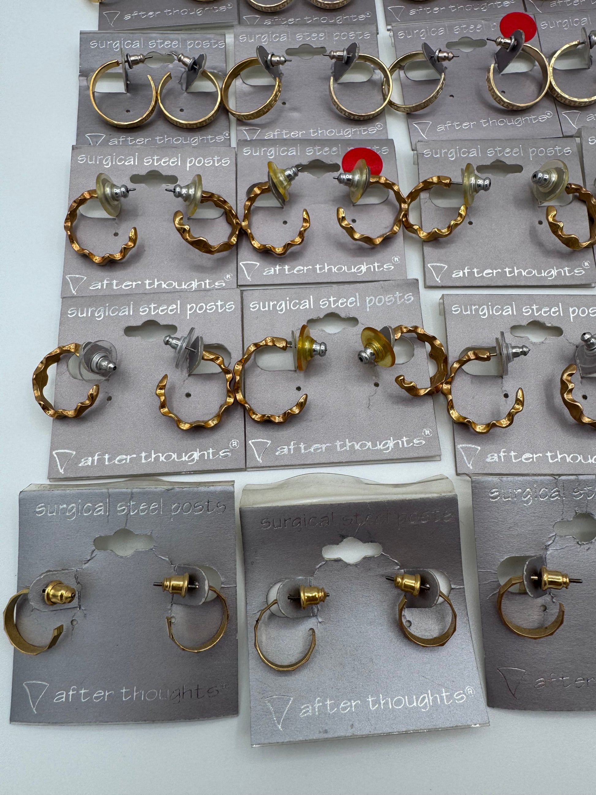 Set of 35 Mixed Gold Hoop Earrings Pairs Costume Jewelry Vintage After Thoughts